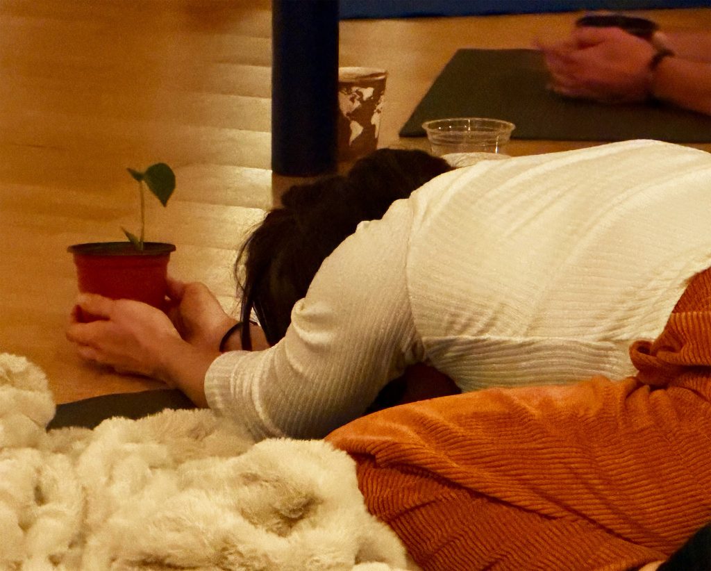 The New Year’s Eve 2026 Activation was a space of remembrance, release, and renewal. Community members and friends gathered to welcome what’s next with openhearted presence and divine alignment. The evening included music, movement, breathwork, creativity, and connection. Here, Andrew, Paladin and Connie get ready for a meaningful celebration, Bexx leads a meditation, and a guest meditates while sensing the root system of a potted pothos plant. Each guest received a plant to root their intentions for the new year in living soil.