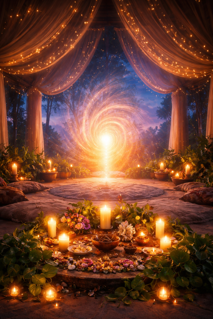 The environment will be lovingly curated with altars, lighting, and décor to support ceremony, connection, and creative flow.