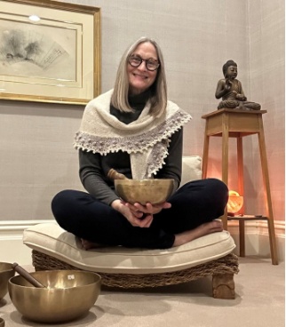 Mary Ann Gebhardt has studied yoga and meditation for over 40 years. She is a registered member of the Yoga Alliance E-500 hour and a Chopra Certified Instructor. She runs workshops on mindful practices such as knitting meditations and sound meditations using Tibetan singing bowls.